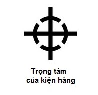 Biểu tượng này thông tin về vị trí trọng tâm của thùng hàng để lưu ý khi vận chuyển.