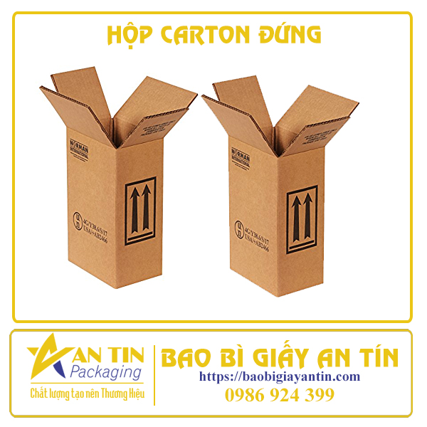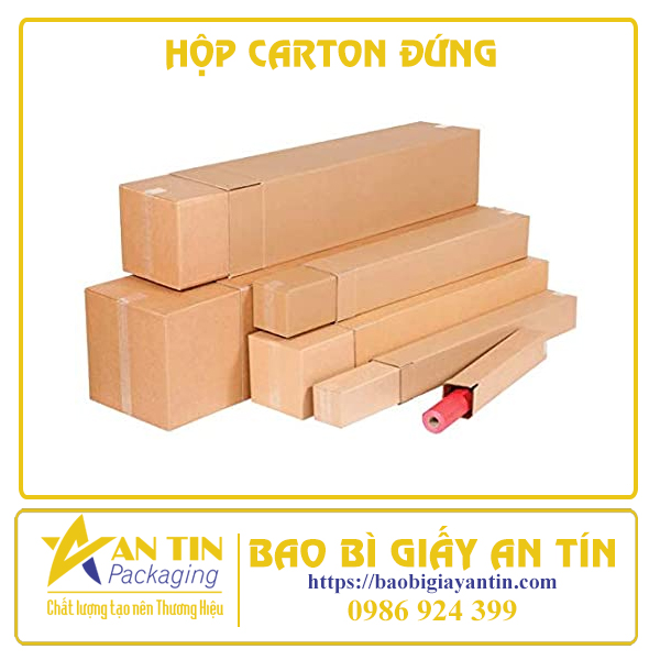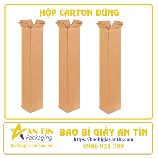 Hộp carton đứng là hộp giấy carton thông thường nhưng có kích thước đứng cao tương tự như hộp carton dài (có chiều ngang dài).