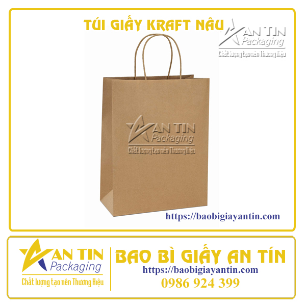 Túi giấy Kraft nâu là một loại túi giấy được làm từ chất liệu giấy Kraft màu nâu. Chất liệu giấy Kraft nâu thường được sản xuất từ sợi gỗ tự nhiên, với quy trình chế biến giúp tạo ra một loại giấy bền, chắc chắn và thân thiện với môi trường. Túi giấy Kraft nâu thường được sử dụng rộng rãi trong việc đóng gói sản phẩm, từ mua sắm hàng hóa hàng ngày cho đến gói quà, đồ trang trí và nhiều mục đích khác.