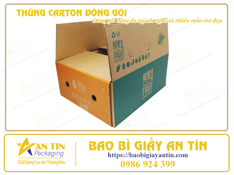 - Loại thùng: thùng gấp thường, thùng chồm, thùng âm dương, thùng carton có quai xách, thùng carton có bế lỗ, thùng carton bồi.